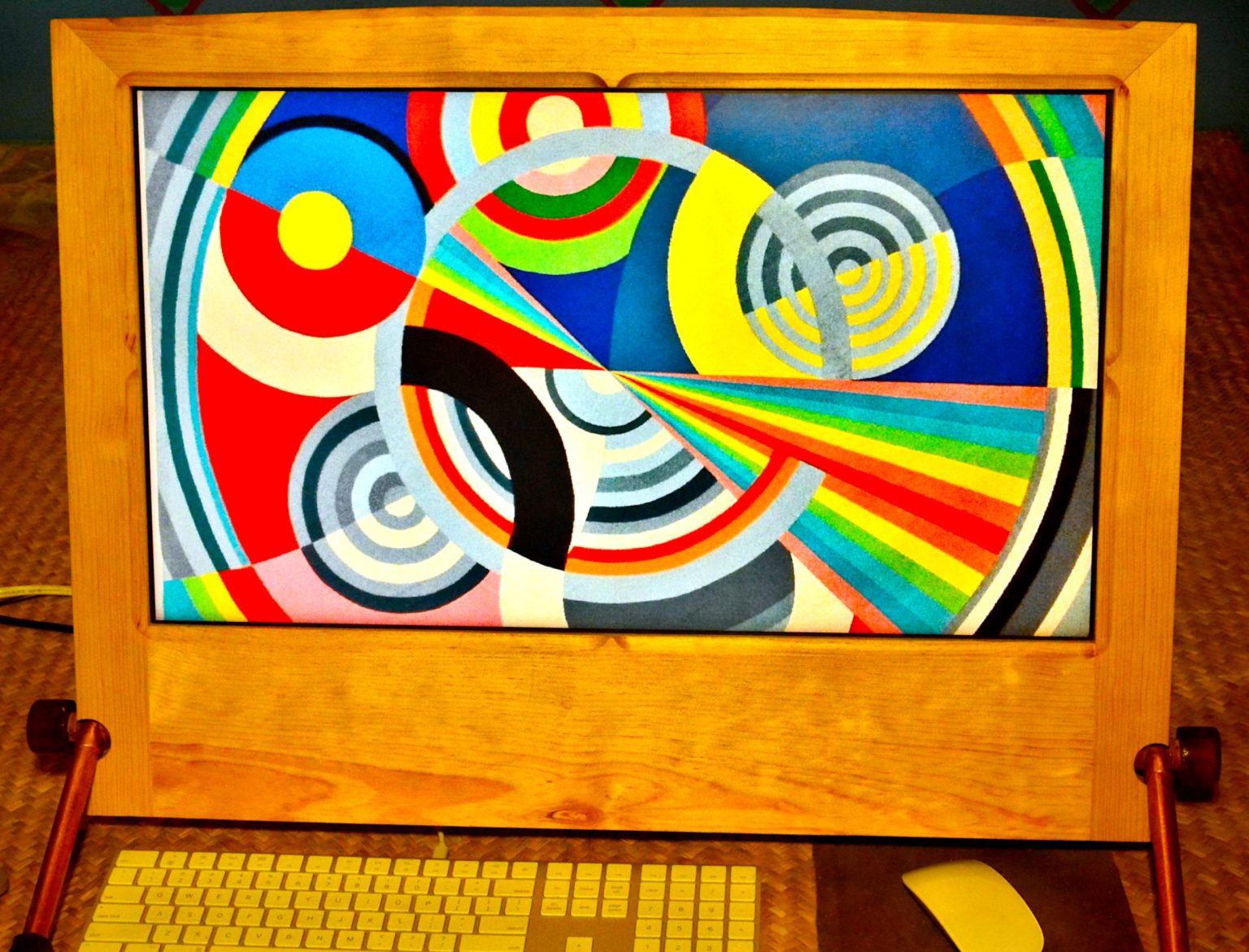SpectrumView Starlore 27″ (Just monitor, no lightbox). Specially tailored to be backlit by the natural lumen of the Sun, specially made for it. 2560 x 1440 (2K), 100Hz, 1ms response time, HDMI, VGA, DisplayPort, 178° viewing angle, VA panel, 8 bit per pixel, semi-glossy finish, external power supply 120/240V. Monitor can also be USB powered with special adapter at request. 75x54x40cm 6.8Kg. You need a window with either direct or indirect sunlight, and preferably without much shadow casting elements, although is easy to get accustomed to them if you do with time. You also need to adapt to the light necessities of the monitor, so most likely rearranging your space will be necessary to be in front of a window, with the Sun cloth filter, otherwise your eyes will not adapt properly to the disproportion of incoming light.