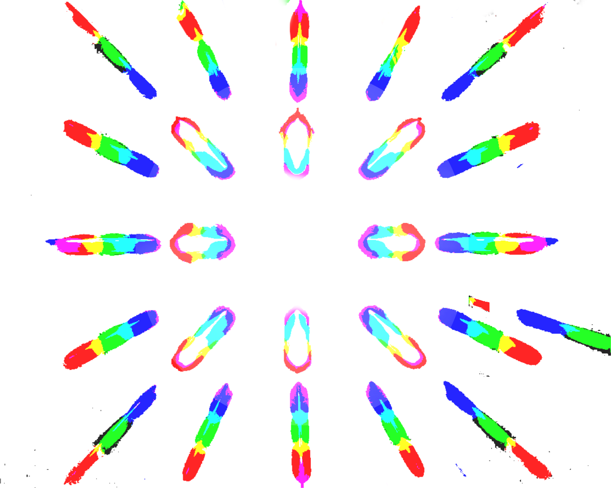 Total observable color gamut from an ordinary luminescent backlit monitor and a electro-incandescent SpectrumView monitor.