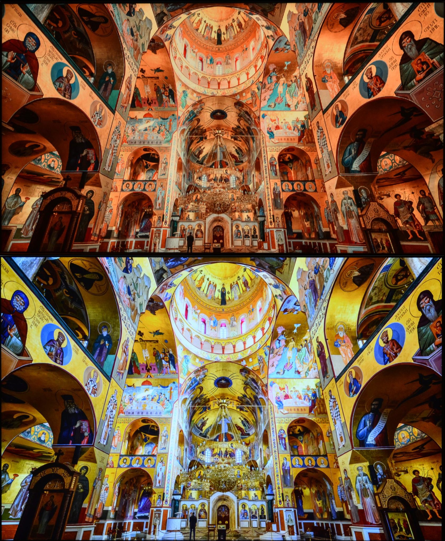 SpectrumView electro-incandescent picture vs and ordinary electro-luminescent picture at neutral camera white point of 6250K.